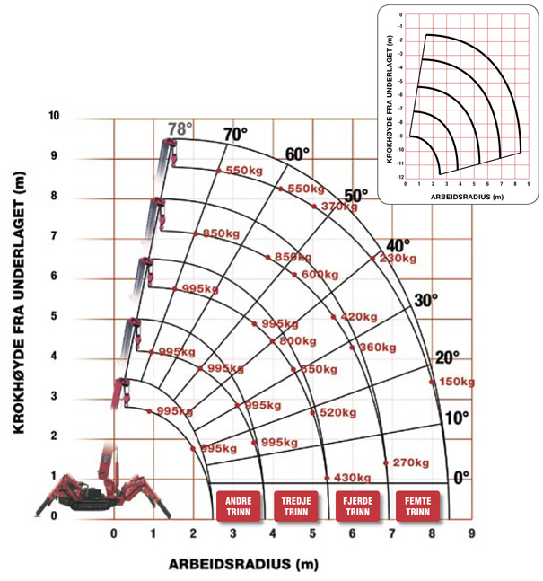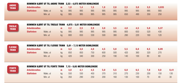 Hjem-Kranvarianter-Unic kraner Cranes-Minikran Unic 095 CR-Løftetabell