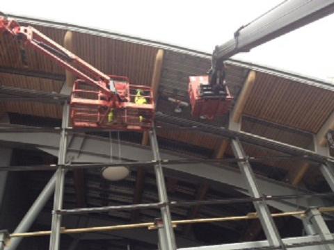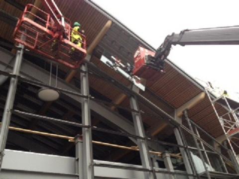 Brukeren står på monteringspunktet med fjernkontrollen og kan styre monteringen med militærkontroll.