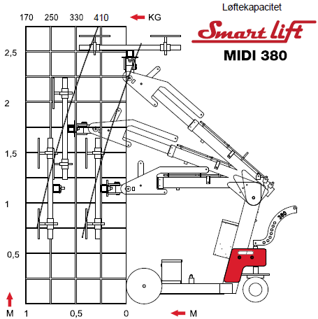 SL 380 Midi er en lift som kan løfte 380 kg. Maskinen er bygget opp fra samme konsept og prinsipper som SL 280 Standard og SL 580 Maxi.