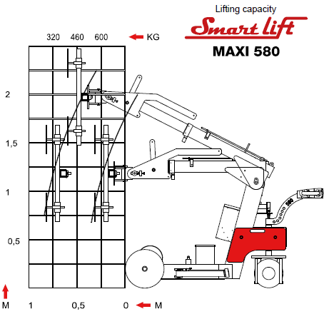 SL 580 Maxi fastholder emnet ved hjelp av fire store Ø400 mm sugekopper, og all betjening og håndtering skjer lett og logisk fra det lille betjeningspanelet. Driftsmotoren har en effekt på 1000 W, og den kjører elegant rundt på harde og plane underlag - selv opp i en kassevogn. Den trekker og styrer på bakhjulet, som innebærer at vende-radiusen er unikt lav.