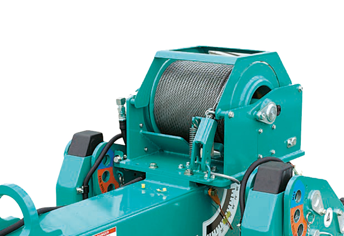 Sikkerhetsutstyr | Hvite gummibelter, enkeltblokk-krok, toblokk-krok, søkekrok (300 kg maks. kapasitet, vekt omtrent 30 kg), radiofjernstyring.