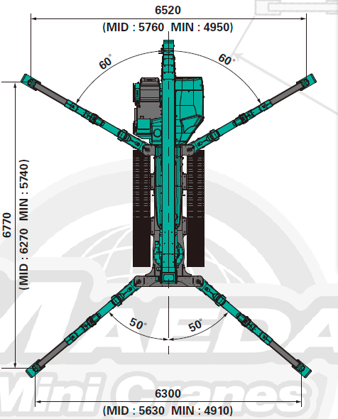 MC815 er en av Maedas fremste modeller med en massiv løftekapasitet på 8.09 tonn. Det er Maedas sterkeste minikran per dags dato. I tillegg har kranen en løftehøyde på 19,6 meter, og hele 25,5m med jibbkrok. MC815 har en 10,4" LCD touch-screen og med sin "pick and carry"-funksjon på 1000kg får du en allsidig kran med fremragende løftekapasitet. Med hydraulisk 2-sylyndret jibbkrok er maksimal løftehøyde 25.5m. En helt ny "Searcher hook" for vekt opptil 1000kg gjør kranen best i klassen. Nytt for denne modellen er strømløftemodus, multiuriggermodus og fjernstyring via joystick, selvutjevningsfunksjon, automatisk kranstamme via fjernkontroll og en IIIB-stegs EU-godkjent miljøvennlig motor.
