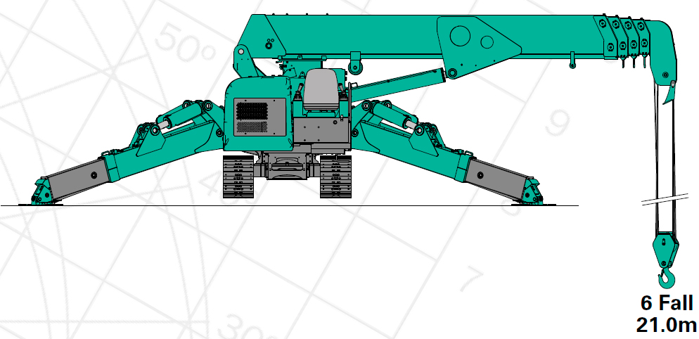| | Standardutstyr | Arbeidslys Tilt-alarm Hydraulisk sikkerhetsventiler Joystick radio-fjernstyring 6- / 4- / 2-falls krokblokk Front og venstre-sidekamera | | Tilleggsutstyr | Alle tillegg