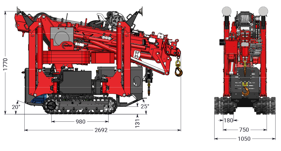 Tilleggsutstyr - Hoeflon C6- Mål med vinsj og jib (L-B-H): 3,14m x 0,75m x 1,95m